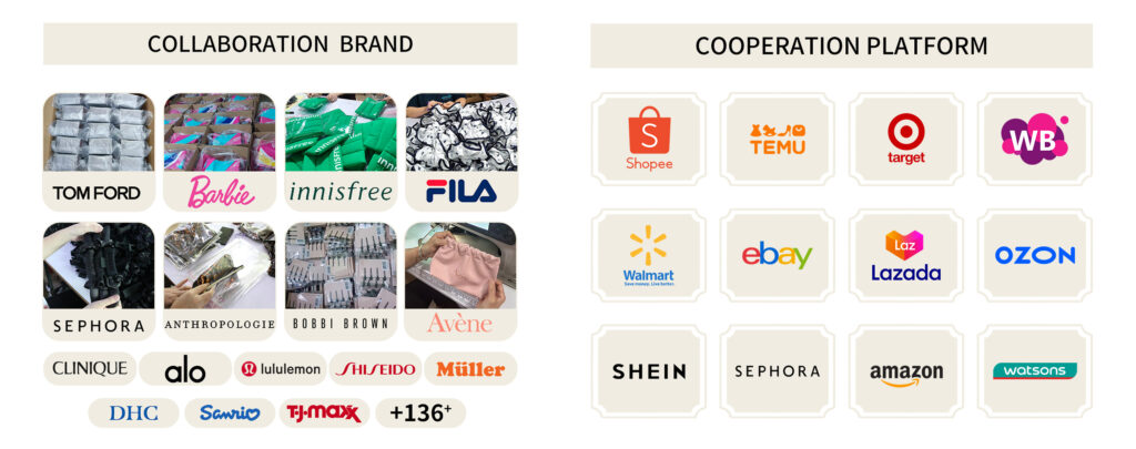 With over a decade of experience, we have built strong relationships with global brands, providing premium cosmetic bags and trendy hair accessories that meet the strictest standards. Our partnerships showcase our reliability and dedication to quality, offering tailored solutions backed by a committed support.