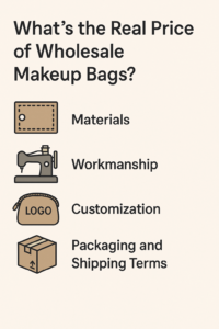 What’s the Real Price of Wholesale Makeup Bags? Wholesale makeup bag pricing is not just “a number per piece.” The real price includes materials, workmanship, customization, packaging, and shipping terms....