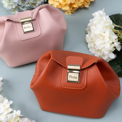 Q&N Custom Name Leather Cosmetic Bag – Personalized Gift Pouch with Metal Clasp