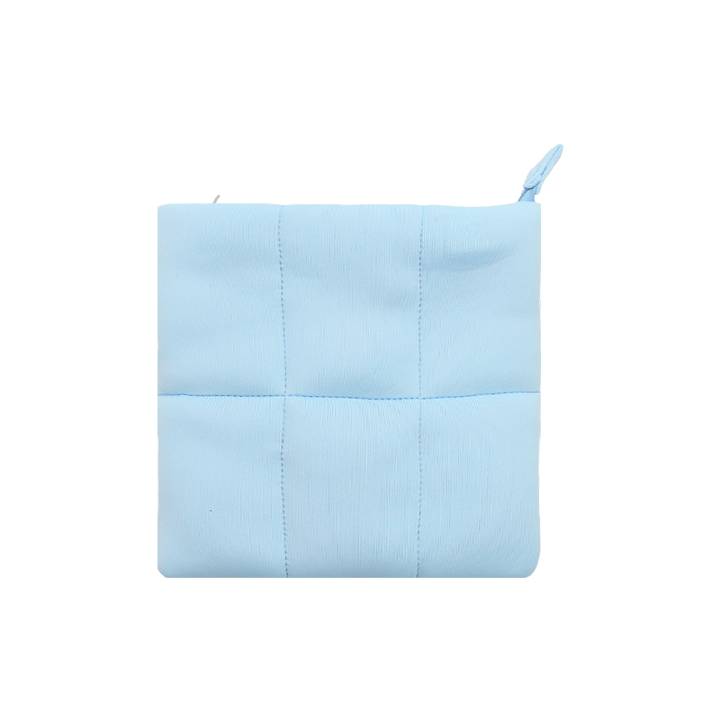 Q&N Light Blue Square Pouch Minimalist Grid Design Bag Zipper Closure Fabric Bag | Simple Functional Organizer with Soft Lightweight Material