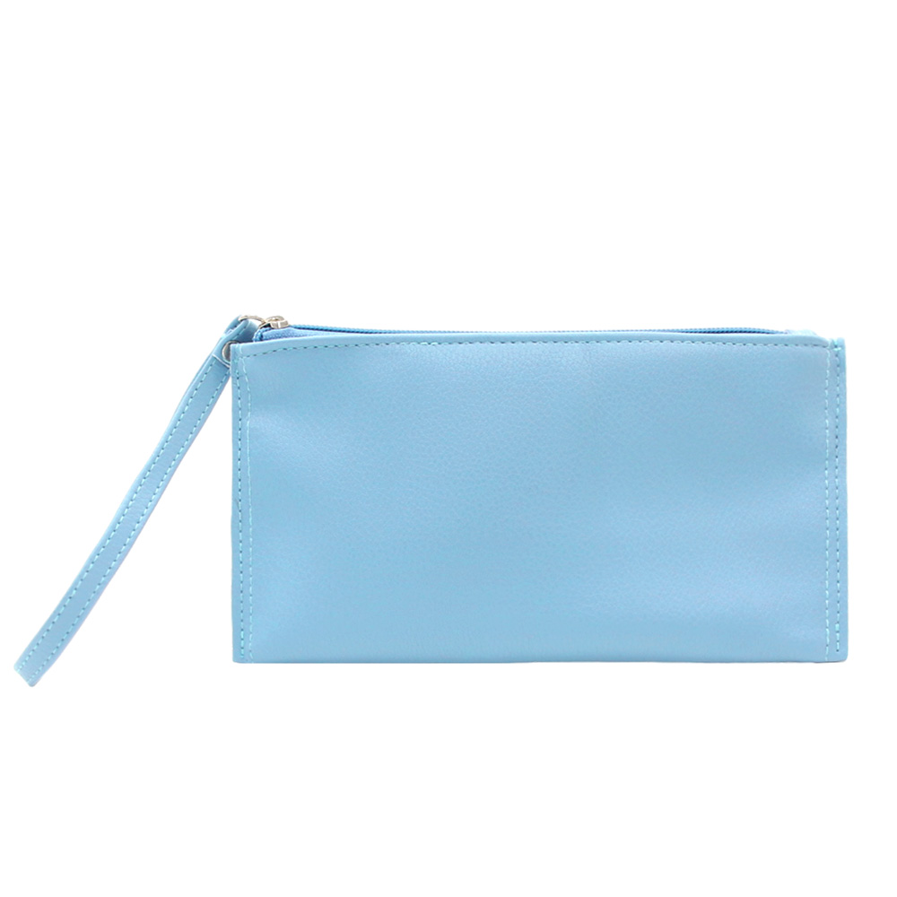 Q&N Light Blue Wristlet Clutch Minimalist Zipper Closure Bag Compact Travel Essentials Pouch