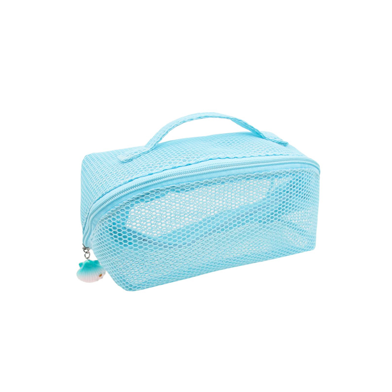 Q&N mesh toiletry bag travel organizer cosmetic case Lightweight Blue Mesh Makeup Bag with Handle