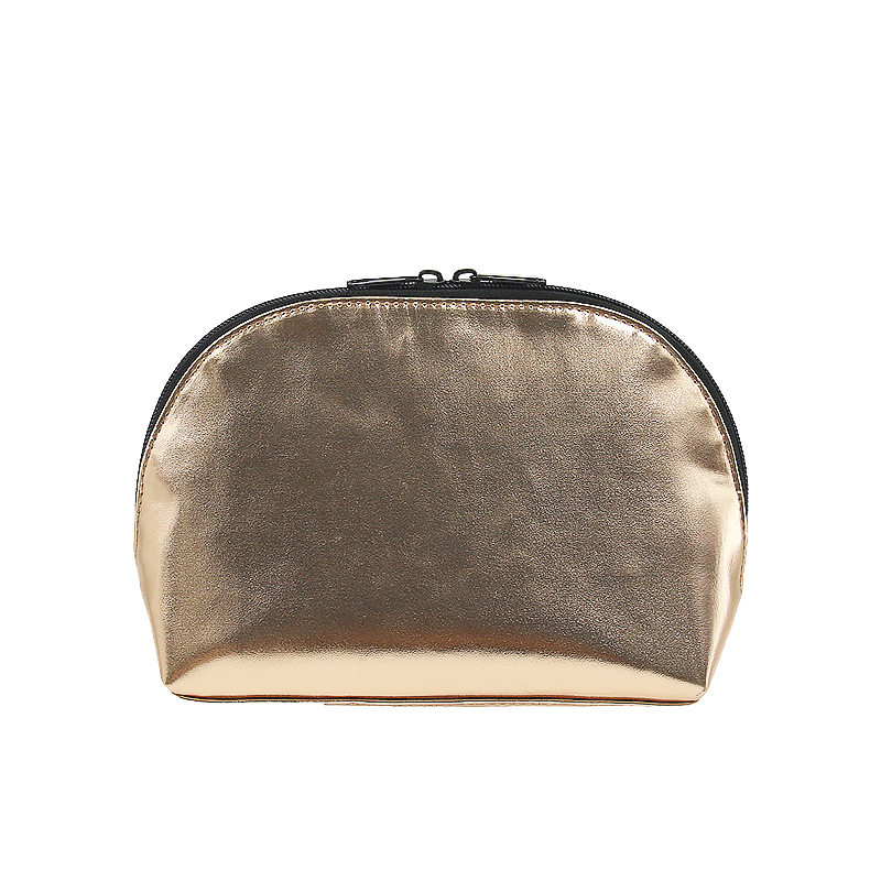 Q&N Metallic Faux Leather Dome Clutch Bag - Compact Zipper Makeup Pouch with Secure Closure