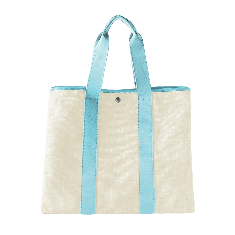 Q&N Natural Canvas Tote Bag with Turquoise Straps & Snap Button Closure