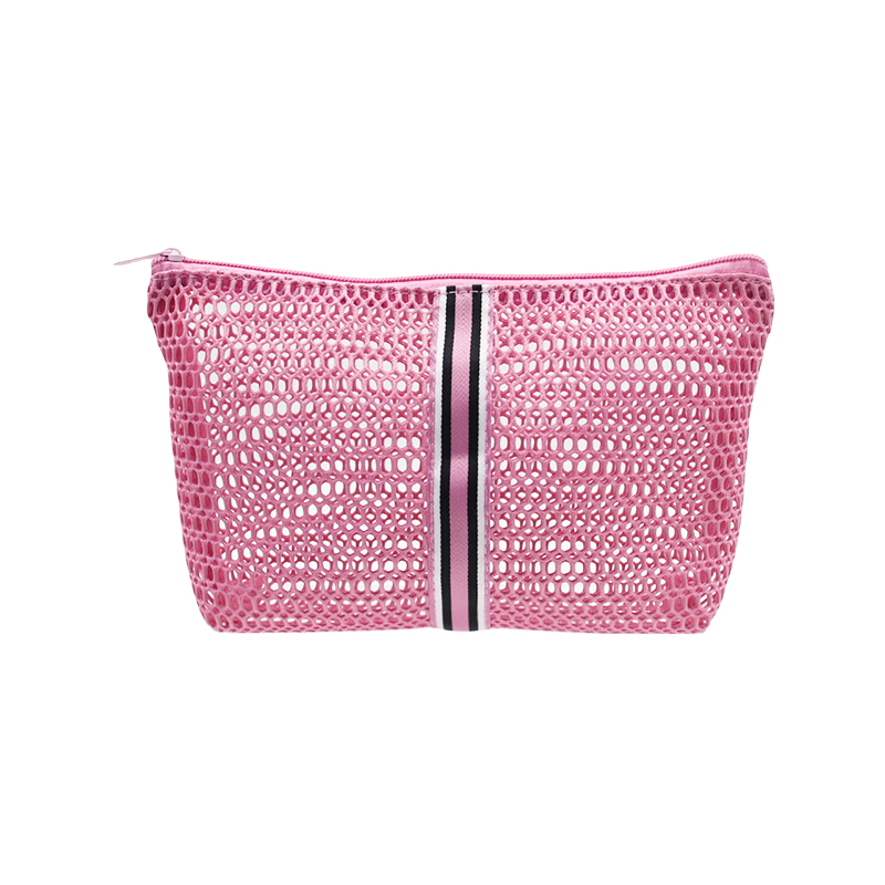 Q&N Pink Mesh Cosmetic Bag with Stripe – Lightweight & Breathable Makeup Organizer