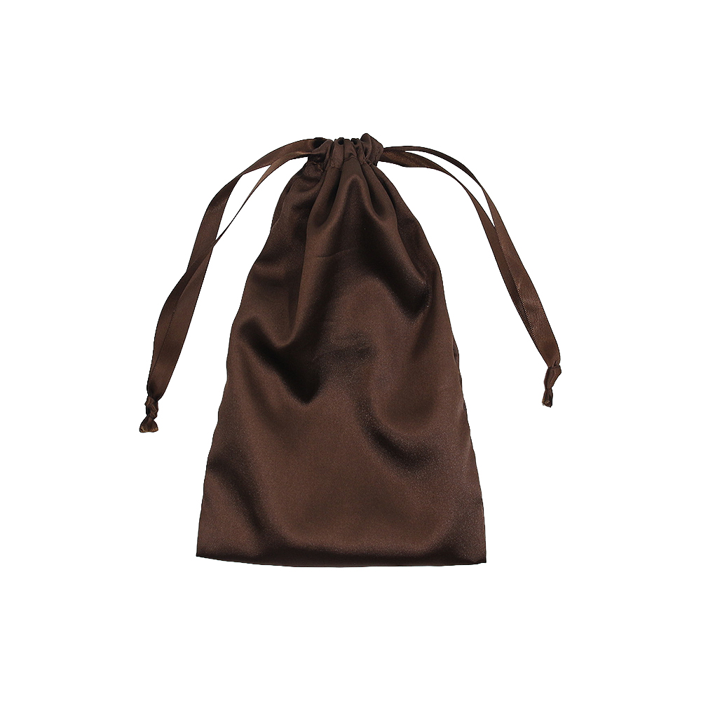 Q&N satin drawstring bag custom pouch jewelry packaging Chocolate Brown Satin Drawstring Gift Pouch for Cosmetics