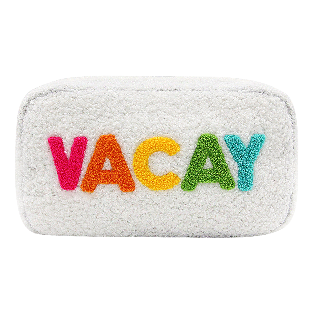Q&N Travel Cosmetic Bag with Zipper Polar Fleece Pouch Bags for Women Girls Patch